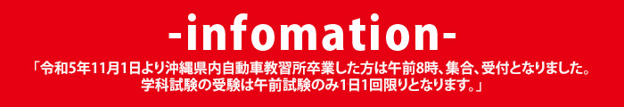 ![]() 外観 ![]() スタッフから一言![]() 講習時間は朝4時30分から開始しております。 朝早く来た方でも必要な書類が無かったり、忘れ物をしてそのまま帰ってしまうかたがたくさんいます。 前日に必要書類などを確認して来てください。 原付き試験の方は、住民票の本籍地が省略になっていると試験をうける事ができませんので注意して下さい。 |